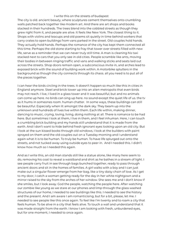 I recall the last day of Budapest, walking and looking and walking and looking and walking alone.